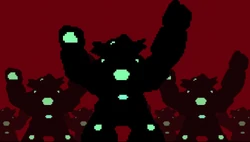 Meanwhile, back in the tunnel... a lone Glyan stands guard over the Neo Phase pool. However, the shadows are hiding something... something invisible... something... Stealth. "Commander?" the Glyan cautiously asked as he peered around the room. The invisible hand of fate clutched his helmet and squeezed with ease. "No..." said the voice. "Fragile creature.." the invisible voice noted as the camouflage drained away to reveal a beastly Armorvor Sonesidar mimic. The infiltration into Frontier Base Alpha had begun....[2]