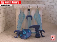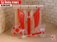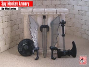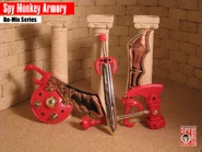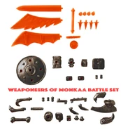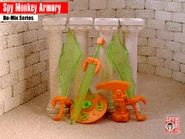 Weaponeers of Monkaa Armory Re-Mix Series sets include a total of 42 Interchangeable Glyos System compatible parts made of durable PVC and high impact ABS plastic. Each set includes 5 complete weapon builds:
