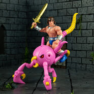 Battle Tribes - Wave 16 Axe Adventurer. Tanned Flesh and paint applications. Each figure has 10 points of interchangeable articulation and includes removable armor, 3 weapons, shield and 5 bonus heads, a total of 21 Glyos compatible parts, allowing consumers to build their own tribes and create their own adventures!" 2.75". One Bonus Weapon included. Glyos compatible. Released on July 5th, 2019. $16 each.