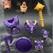 Warlords of Wor - Wave 14 Wave 14 Accessory Set Production PVC. Dark Purple with paint applications. 3" tall, 10 points of articulation. Wave 14 Accessory Kit includes the following: 5 heads, Fur Armor, Shield, Axe, Paladin Mace. Released on September 18th, 2021. $8 each.