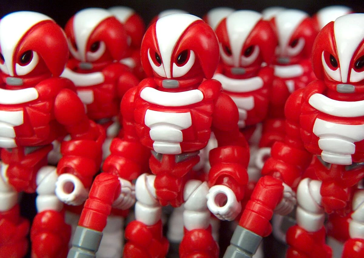 Production Darkness Soldier - Solar Storm. Hunter Orange (Zemo) with White Accents. SPECIAL CROSSOVER EDITION with Onell Design. These comet-riding space jockeys provide support to Darkness! Includes bonus blank Nazarran™ and Glyninja™ heads! 35 pieces. Released on October 4th, 2019. $15 each.
