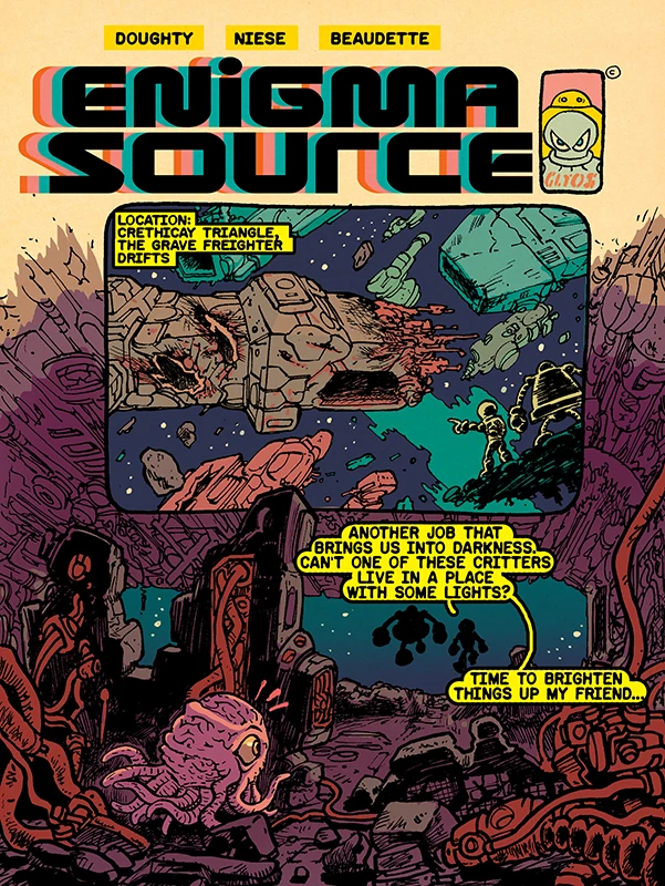 Crethicay Triangle, the Grave Freighter Drifts. The tiny Noboto and his larger, rounder partner Gobon stood outside their target freighter as a half dozen other derelict ships floated by. "Another job that brings us into darkness. Can't one of these critters live in a place with some lights?" Noboto sarcastically commented as they entered the ship. "Time to brighten things up my friend..."