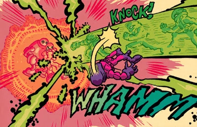 "I... AM... THE DARK TRAVELER!" the green Traveler answered with a charged fist. The space trappers were knocked back harder than ever.