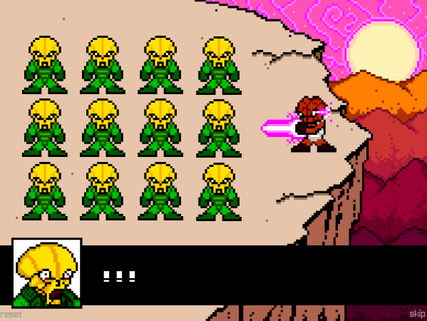 "....." grimace Govurom on the cliff's edge as his cloak flapped in the evening breeze.. The sun was setting and his patience with it. "...so predictable." Marching towards him was a full squad of the standard bearers of the Exellis mission: the Lost Sincroid Army. Green suits and yellow heads stood out brightly against the sun burnt surface of Granthan.