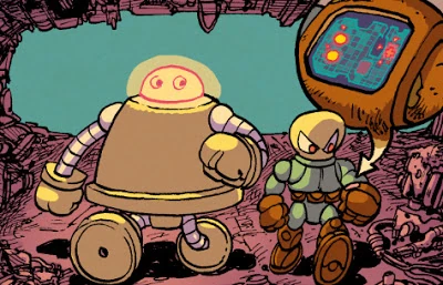In MvR, Noboto is the leader of the Monster hunting Robots, chasing a renegade group of creatures across Glyos, but all told in the form of a comic that Michelle's character Sidrick loves to read. So a comic within a comic - MvR appears inside the Sidrick stories.