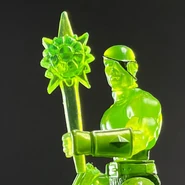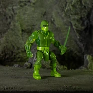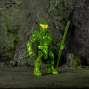 Battle Tribes - Wave 28 Oozarian Ninja. Translucent Green (Oozarian) with paint applications. Each figure has 10 points of interchangeable articulation and includes brand new chest, boots, gloves, slip on belt with weapon loop, 2 swords with plug in sword holder, sai, 'chucks and bo staff! 3 heads. Also includes standard battle tribes chest, hands and boots. 2.75". Glyos compatible. Power-Con 2021 Exclusive. Released on September 11-12th, 2021 at Power-Con 2021 and online on September 14th, 2021. $18 each.