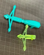 Resin hand casted Urethane items. Hand painted. Parts are Glyos compatible and sanctioned by Spy Monkey Creations. Limited run. 3 piece Resin set (head, crossbow, crystal viewer). Toyraider.com exclusive. Warbow homage. Released on October 18th, 2022. $15 each 3-piece set. The Oozarian Ninja was also available (existing Wave 28 stock) for $15 each or $30 for both sets together.