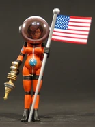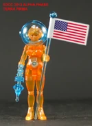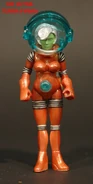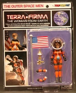Production PVC Terra Firma - The Woman from Earth. Orange with Translucent Colorless accessories. Glyos-compatible. Accessories: Removable 3-piece helmet, magnet jetpack/Anti-Gravity Generator, Atomic Disintegrator, alternate arms. First released on February 28th, 2014. Carded figure. Limited Edition. Sold individually and as a set with Gamma-X & Jack Asteroid. $13 each or $48 each 3 figure set.