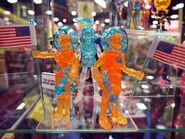 Production PVC Terra Firma - The Woman from Earth. Translucent Orange with Translucent Blue accessories. Glyos-compatible. Accessories: Removable 3-piece helmet, magnet jetpack/Anti-Gravity Generator, Atomic Disintegrator, alternate arms. First released at SDCC 2013 on July 18th - 21st, 2013. Bagged figure. Limited Edition. Sold as a set with Gamma-X and Jack Asteroid. $60 each 3 figure set.