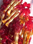 Production PVC Terra Firma - The Woman from Earth. Translucent Red / Orange Color Dyed with Chrome Silver or Chrome Gold accessories. Official Customs by NiStuff. Glyos-compatible. Accessories: Removable 3-piece helmet, magnet jetpack/Anti-Gravity Generator, Atomic Disintegrator, alternate arms. First released on December 2013. Bagged figure. Limited Edition. $35 each.