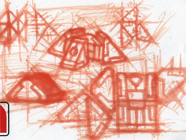 Conceptual sketches are the usual mess of ideas, with a few done after the initial test shots failed to work (like the Switch Pin)."[3]
